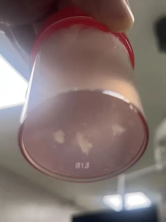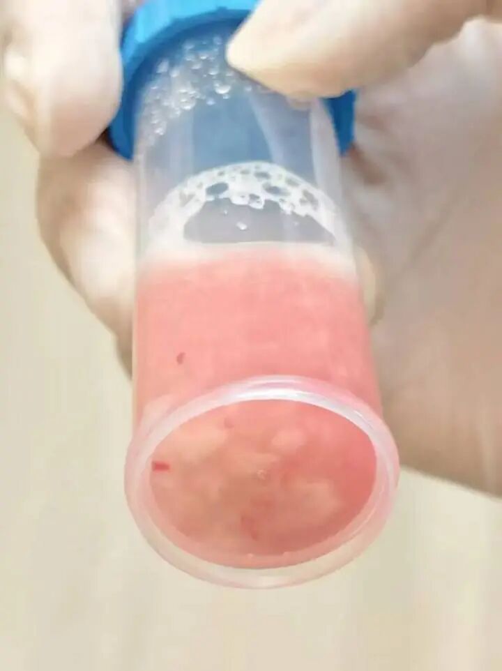 从上至下分别为三次支气管镜取出的塑型,第3次塑型明显减少,灌洗液也比之前清亮